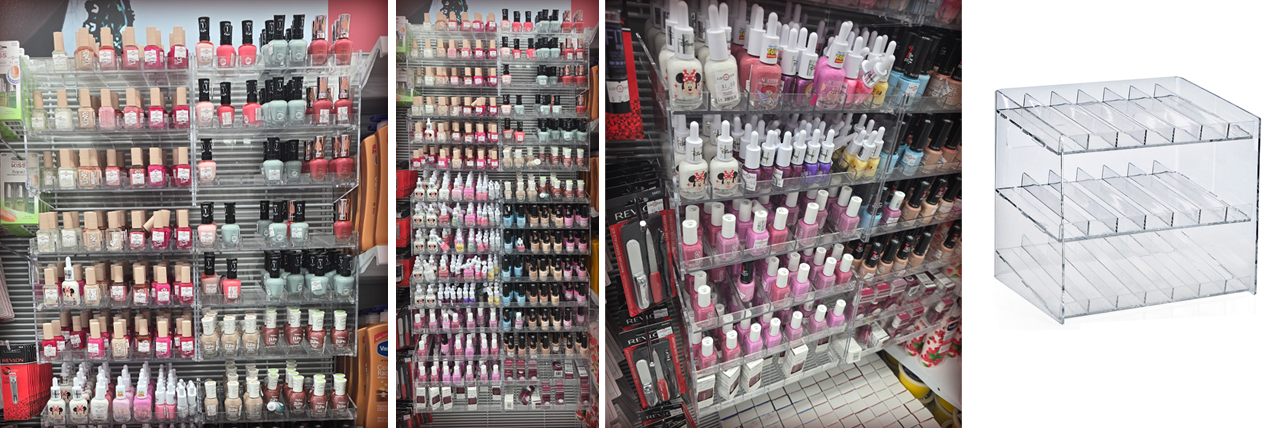 Picture this: rows of shiny little bottles lined up by shade—from soft ballet pinks to bold electric blues—all perfectly perched on sleek acrylic, like our Three-Tier 21 Compartment Display (SKU 222988). These versatile displays that are avaiable in 2-tier, 3-tier, 4-tier and 5-tier are durable and allow for optimal customization - use them on pegboard, slatwall, or countertops to present an assortment of products in a neat and organized arrangement. Personalize your display even further by using a sign holder or c-channel to add your logo or graphics! When your setup looks this good, customers won’t just stop and stare…they’ll stop and shop!